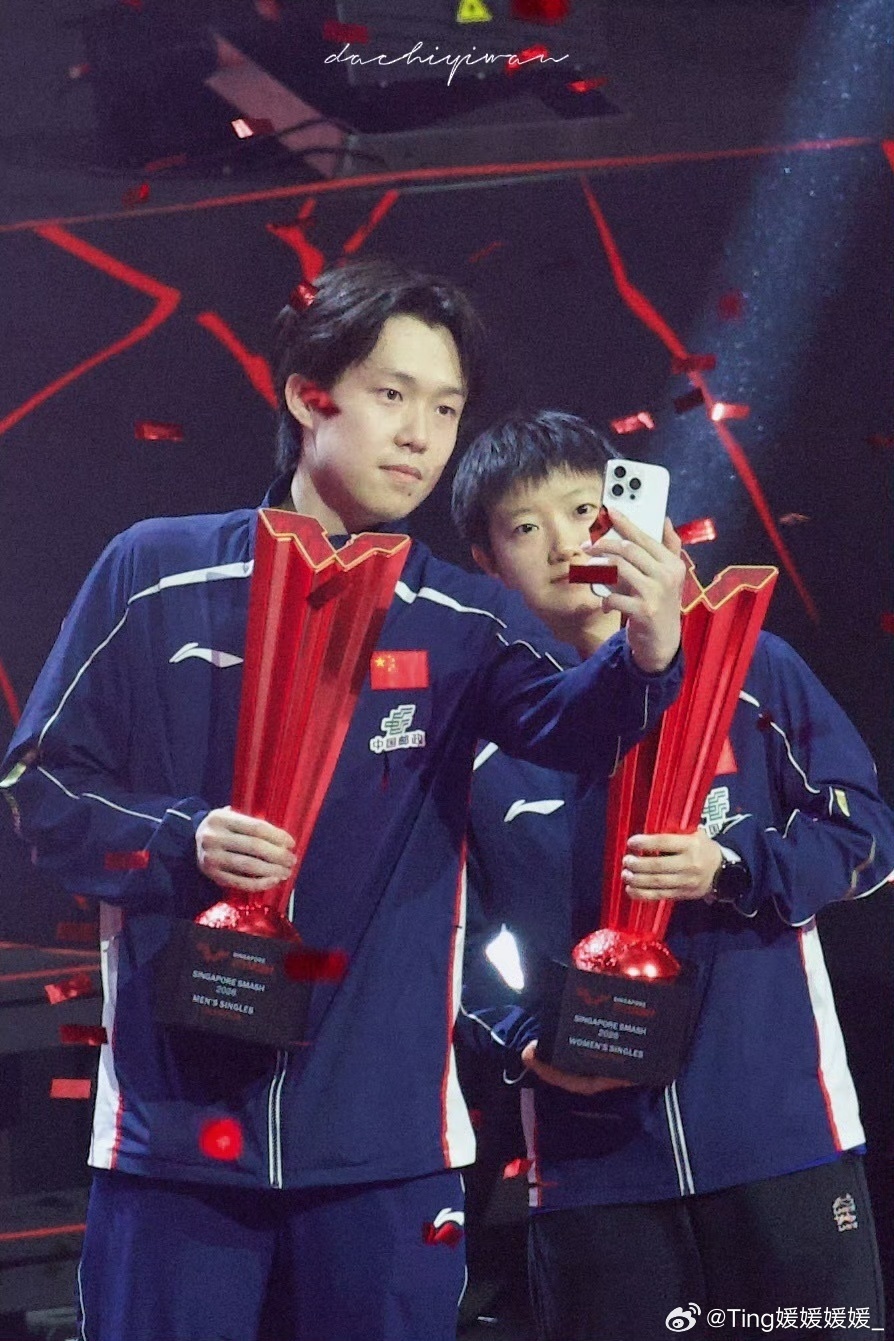 男单决赛,王楚钦4-0横扫林昀儒,夺得冠军,与女单冠军孙颖莎巅峰相见。两人在颁奖仪式合照时还发生“争吵”,孙颖莎让王楚钦拿手机拍照,但王楚钦想让孙颖莎拿,最终王楚钦还是选择“屈服”,拿起手机和孙颖莎拍了合照,