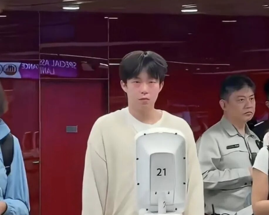 当国乒从新加坡启程回国的时候,有网友在机场拍到了王楚钦。从视频来看,他的脸色异常通红,眼睛格外红肿,人脸识别好几次没有通过。