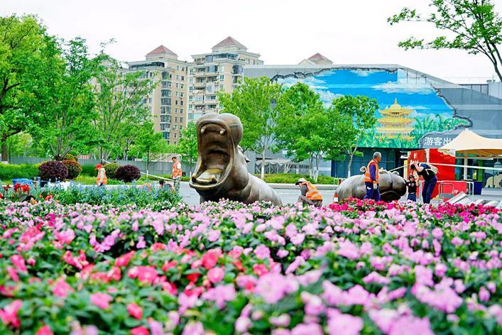 武汉动物园花卉布展中 通讯员供图