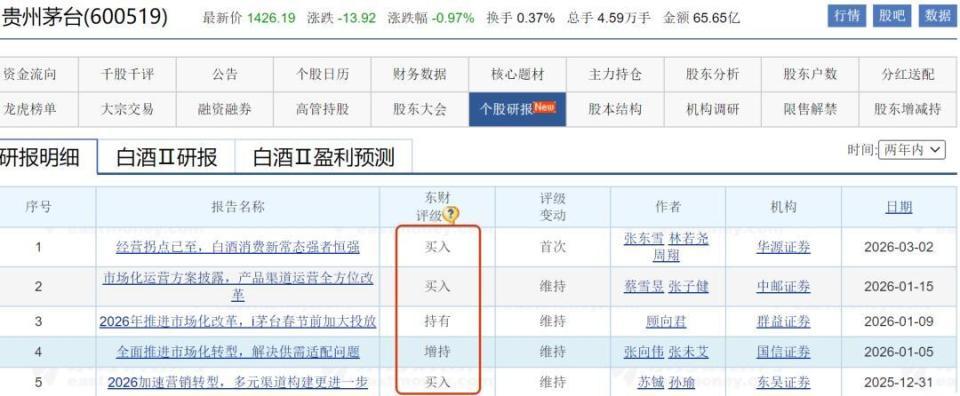 在茅台改革利好、以及段永平的加仓的消息面下,茅台股价开始反弹,2026年2月累计涨幅16%以上,市值一度逼近2万亿元,即便节后其股价出现一波连跌,机构却一致上调评级。可见市场对茅台依然有较强信心。